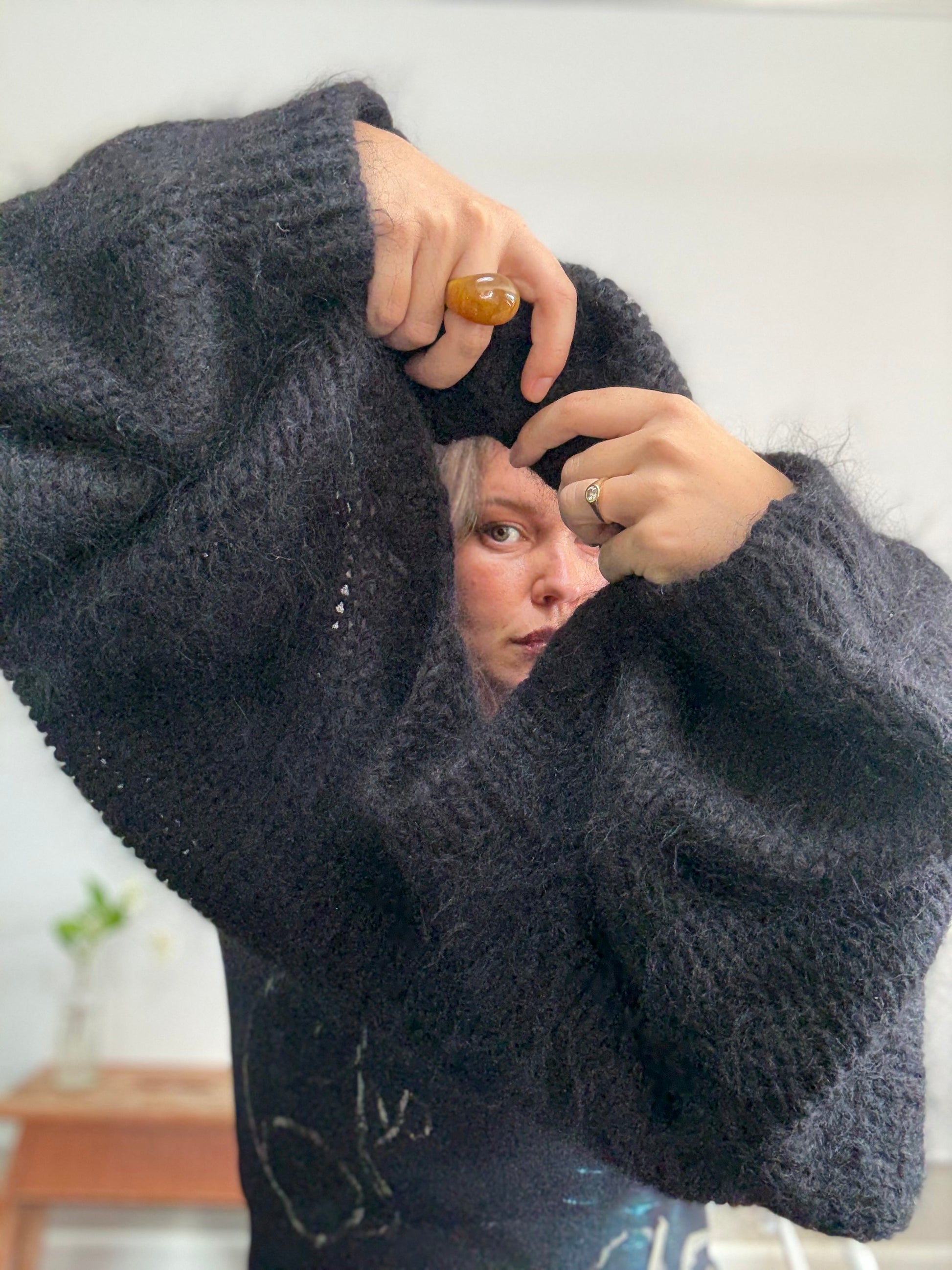 Fully black pieces from Itchy are rare, so think of this as a seasonal treat (minus the coal dust). A slouchy staple you’ll reach for constantly.